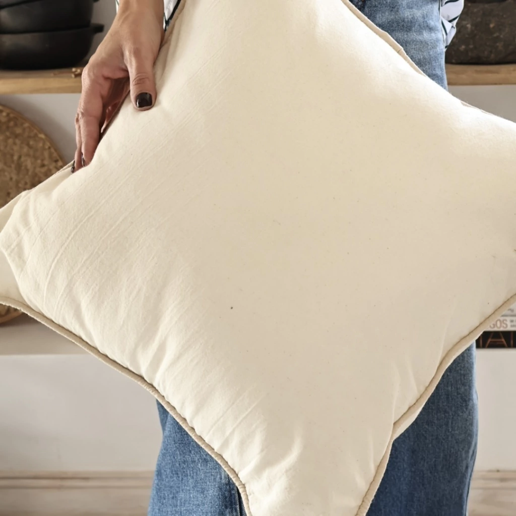 Este almohadón de tusor con un detalle delicado en su borde de color crema, es la opción perfecta para añadir un toque de modernidad y confort a tu hogar. Contiene un detalle lineal que le aporta un toque de sofisticación a cualquier ambiente. Es ideal para decorar camas, sofás o sillones.